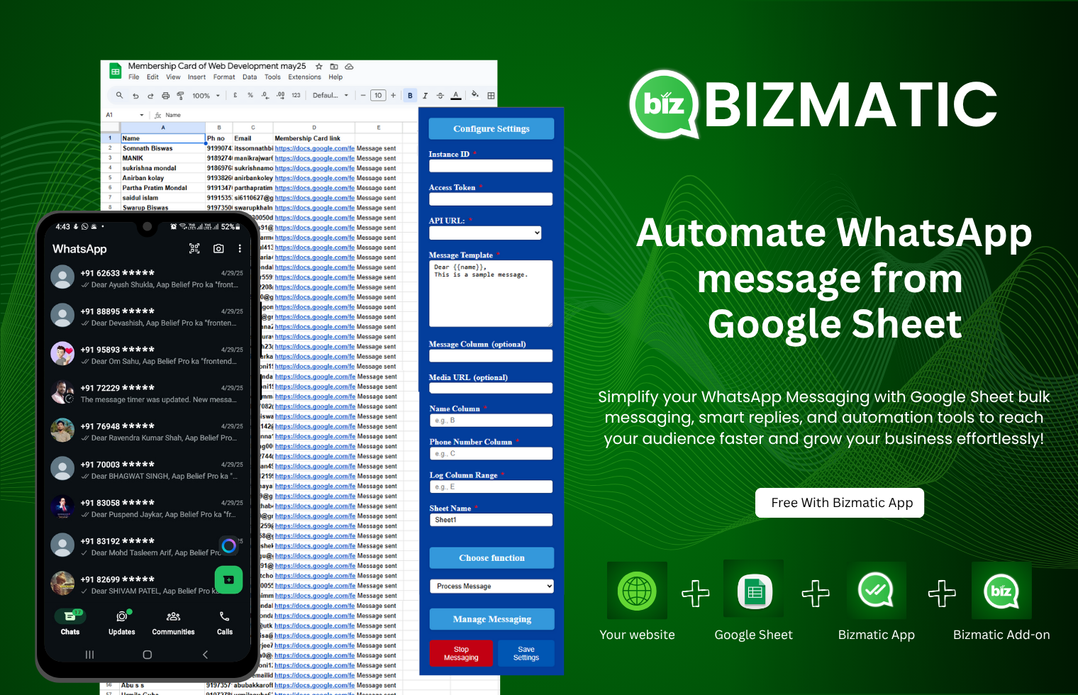 WhatsApp your customers directly from Google Sheets with this add-on + Bizmatic app!