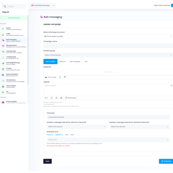 Easily include images, clickable links, or both in your WhatsApp messages.